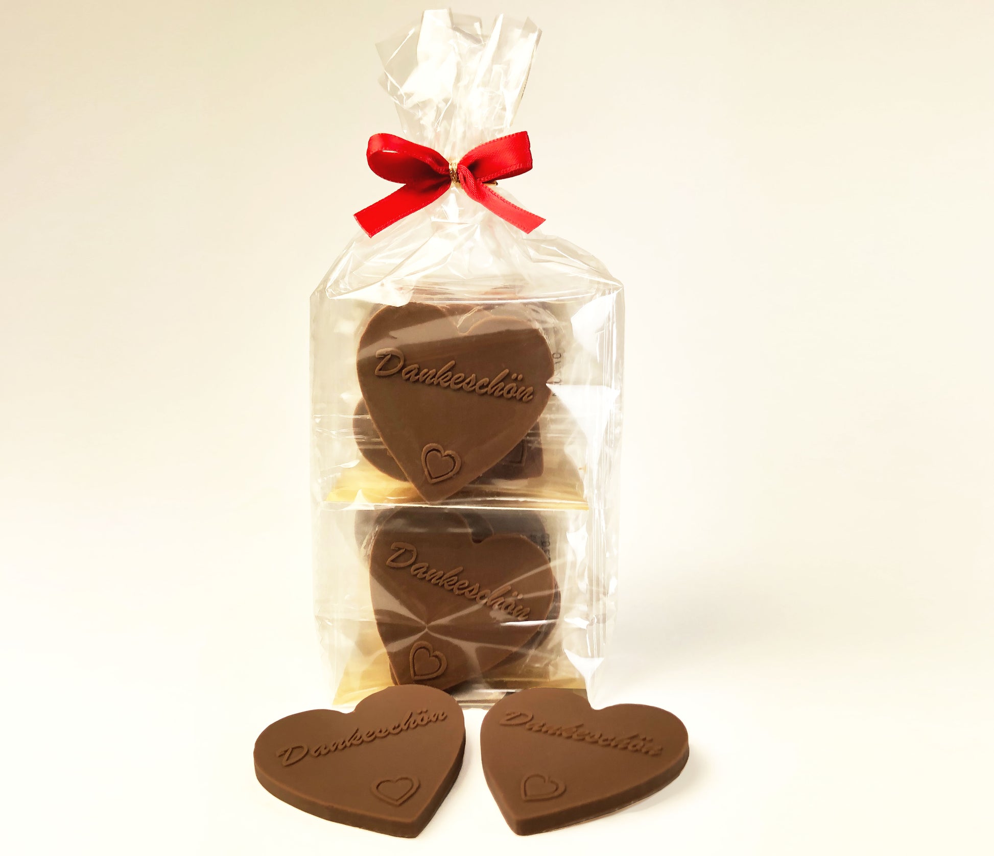 - Dankbarkeit in jedem Bissen: 12 Schokoladenherzen mit "Dankeschön" für Hochzeiten, Spendeaktionen und Jubiläen. Jeweils 5cm groß aus leckerer belgischer Vollmilch-Schokolade.